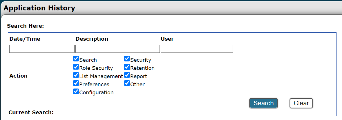 How to Access: Navigate to the Admin page and select the “Application History” link.