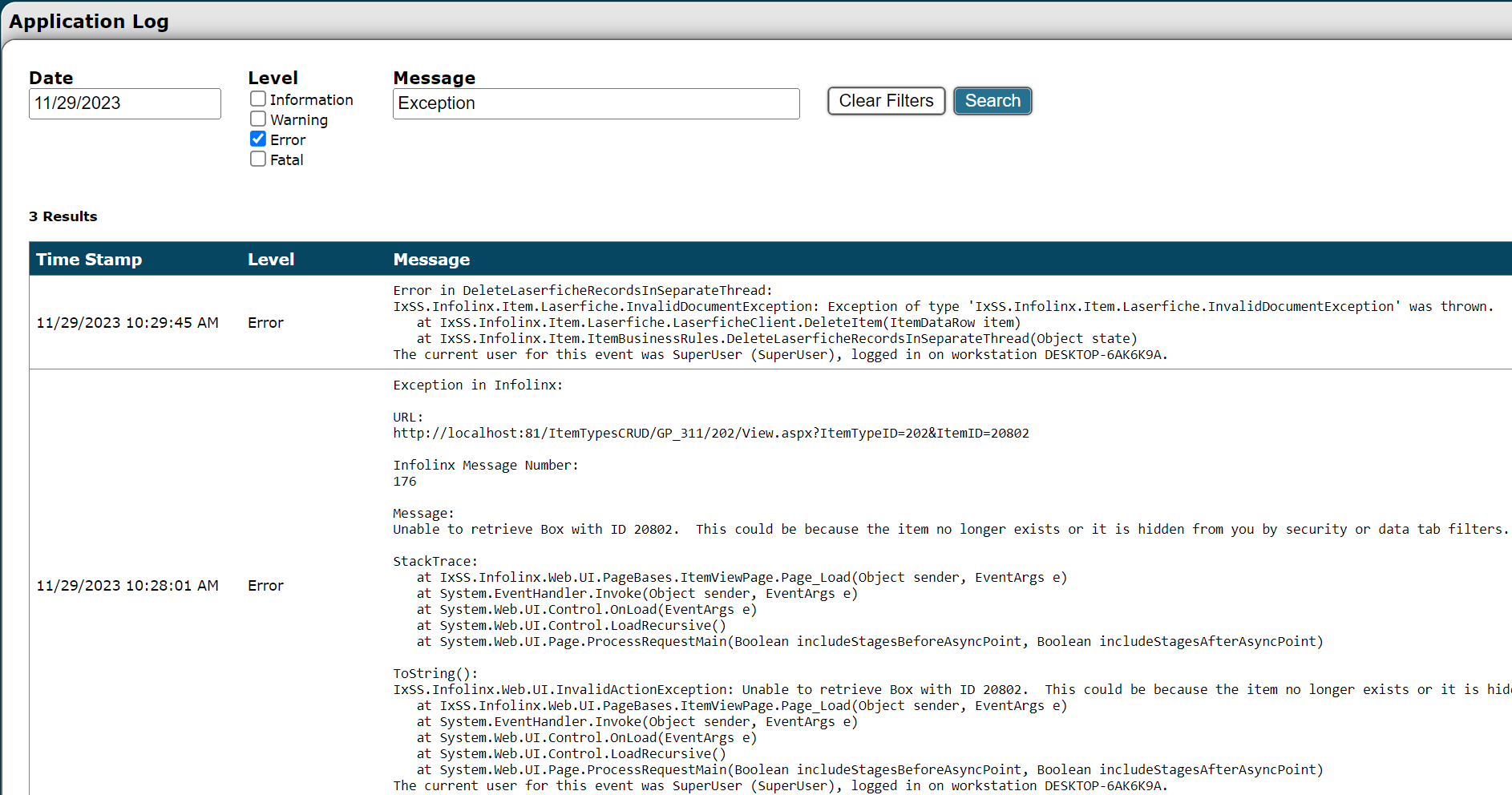 The Application Log is designed for IT professionals and support teams to diagnose and resolve unexpected application events. It provides technical details on such events, helping to pinpoint the root cause.