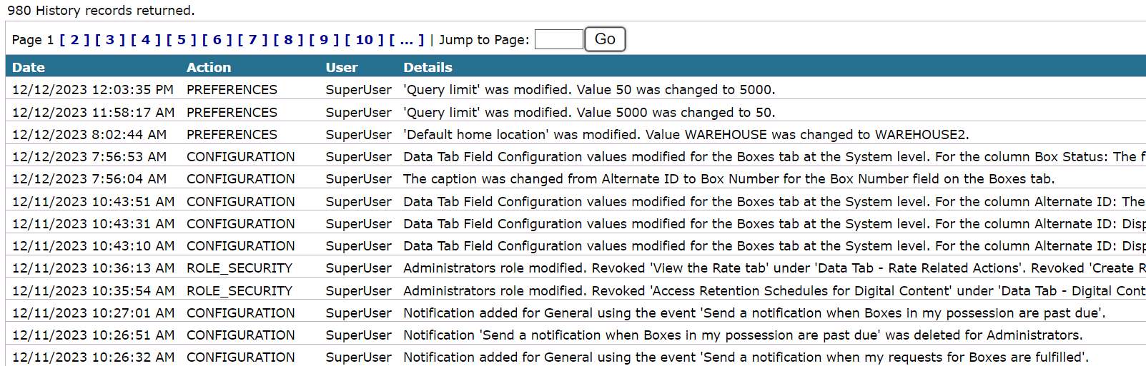 Filtering Options: You can filter the history by various categories, including Date/Time, Description, and User details, to easily locate specific changes.