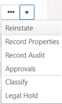 Classify – lets you reclassify the record to a new record class. The record has it’s expiration date recalculated based on the new record class lifecycle