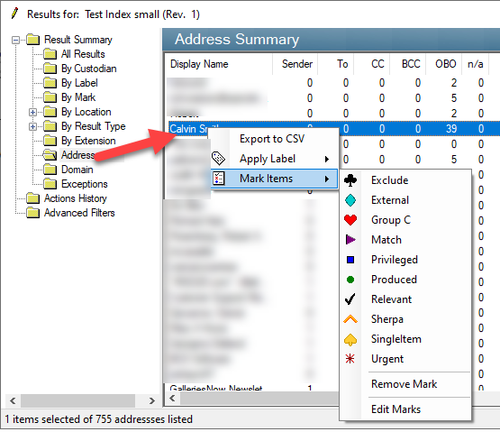 Although finding a conversation between two addresses is easier using the search wizard, the same result can be achieved using Marks and Filters with the Address view in the Result Management Screen.