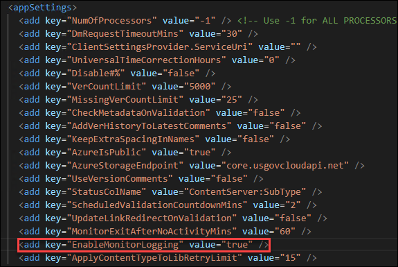 Edit the MAPIT configuration file (Gimmal.Migrate.MAPIT.exe.config) and ensure the EnableMonitorLogging node is set to true. This file is located with the MAPIT executable in a directory similar to C:\Program Files\Gimmal\Migrate\MAPIT.