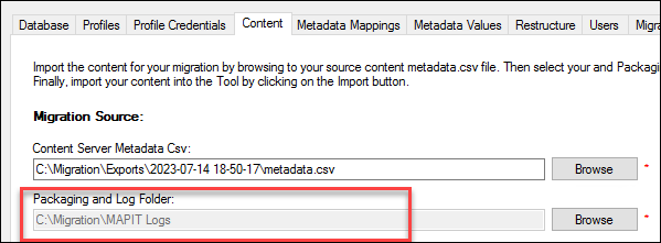 The Analysis, Migration, and Validation logs are created in the Packaging and Log folder path specified in MAPIT in a sub-folder for each migration profile.