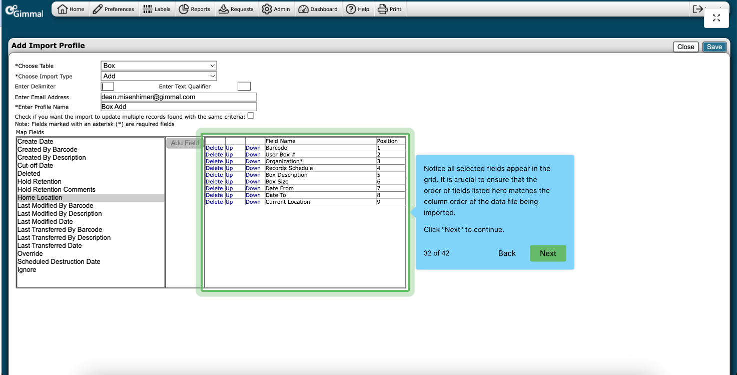 Do you need to import data into Gimmal Physical? The native Import tool allows you to seamlessly import data into any tab or list within the application. This tool can be used for one-time imports or scheduled nightly imports.