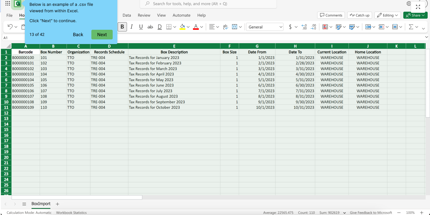 Upload Your File: Upload the file and map columns to the appropriate fields in Gimmal Physical.