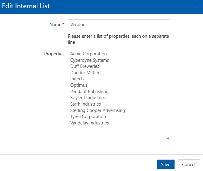 In this example, we have a list of Vendors we’d like to use in our rules. We created a list of companies and then named the list Vendors.