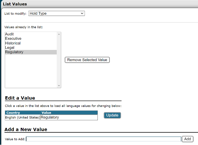 Did you know that you maintain full control over all list values within Gimmal Physical? To do so, navigate to Admin/List Values in Gimmal Physical. Here, you'll find a dropdown showcasing all list fields.
