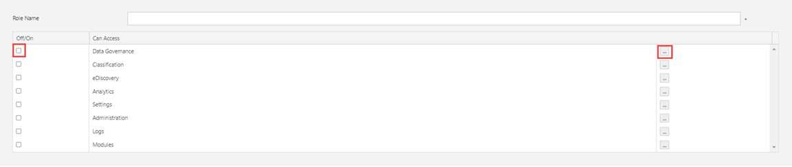 The first four components are for the four modules; Data Governance, Classification, eDiscovery, and Analytics. Once any of the modules are selected, you can then click on the ellipsis to the right and select the Privilege(s) and Feature(s).