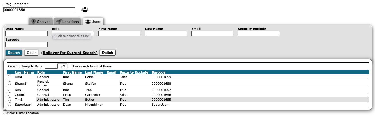 Once selected, the unique ID (barcode) of Tim Butler will appear in the destination text box.