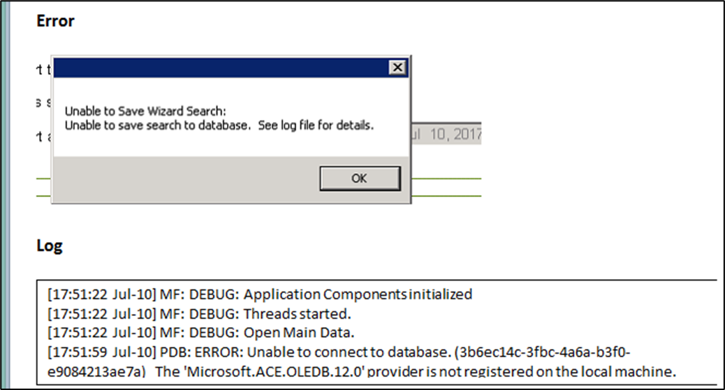 Unable to open search databases / Error saving Search Wizard